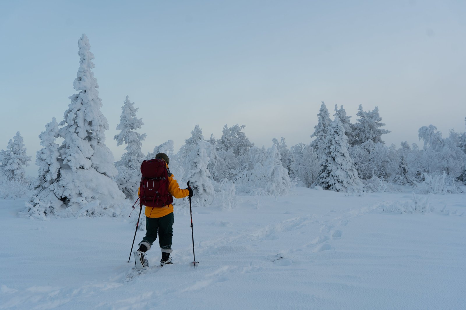 More specifically regarding the hike, it is usually around 4-8km with the goal to reach untouched or off tracks areas of the National Park. In fact, this experience is designed to explore elusive nature area or reach some viewpoints over the immense subarctic forests.